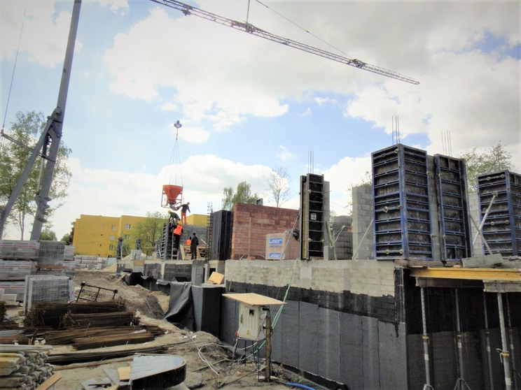 [09.06.2020]W budynkach A2, A3 i B trwają roboty konstrukcyjne parterów i pierwszego piętra.W budynku A1 zakończono strop nad parterem, natomiast w piątym ostatnim budynku C w 70% zostały wykonane piony parteru.