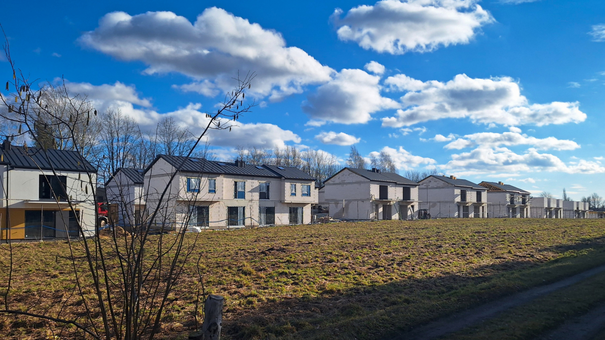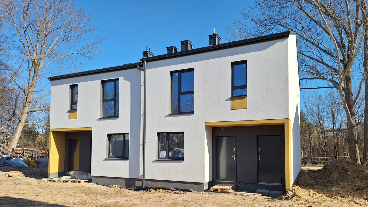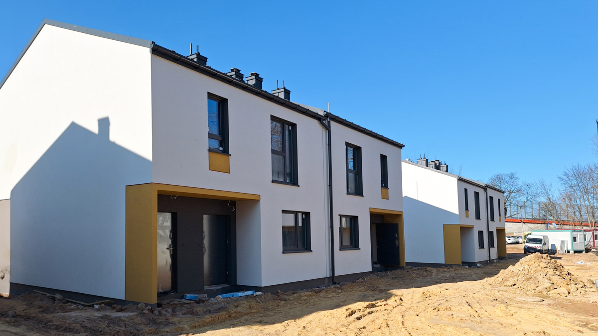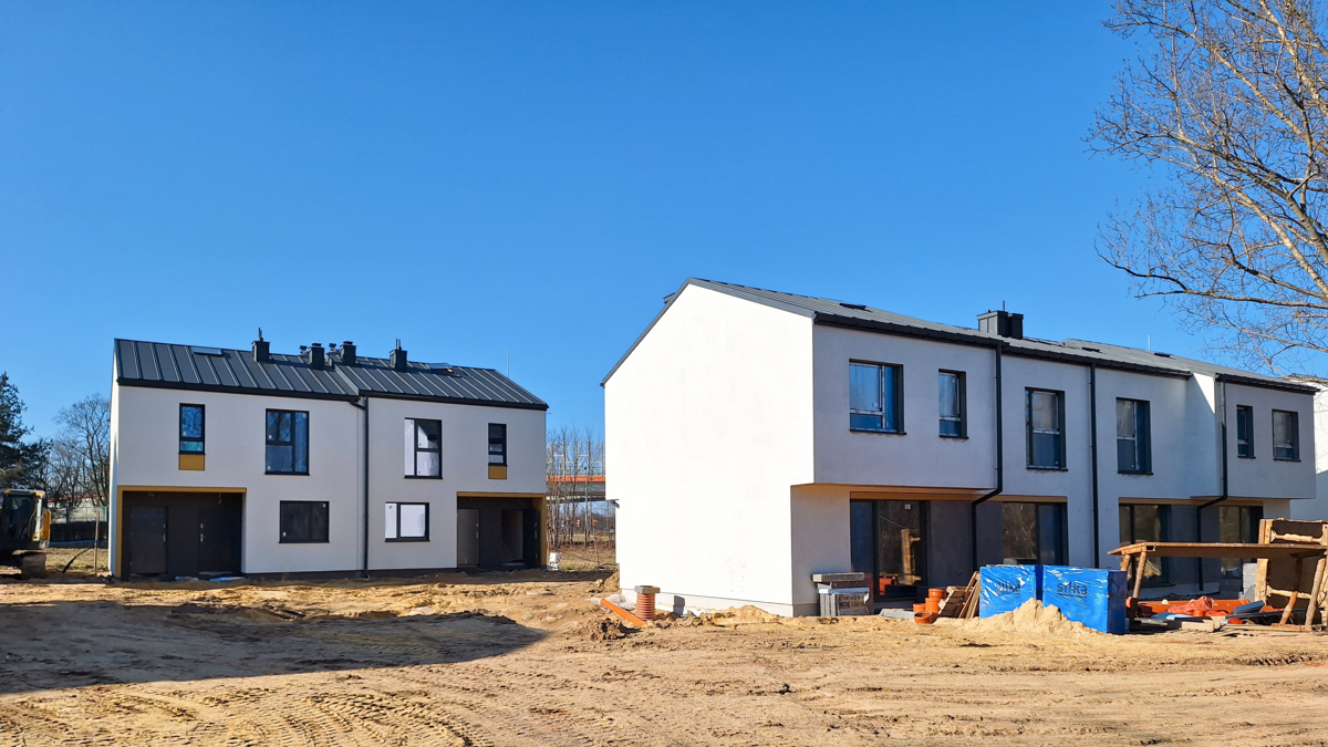 Domy zostały wybudowane trwają przygotowania pod montaż konstrukcji dachowej.