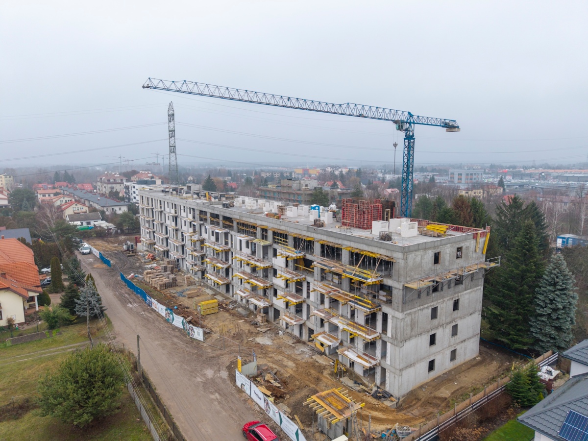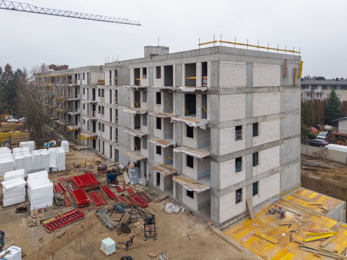 Prace budowlane w inwestycji Osiedle Jabłonova w Piasecznie przebiegają bez zakłóceń. Mieszkania w części A zostaną oddane do użytkowania do 26 listopada 2026 r., a w części B do 28.02.2027 r.