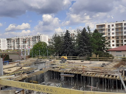[24.04.2020]W ostatnim tygodniu zostały wykonane następujące prace:- zabetonowano wszystkie części stropu nad garażem- kontynuowane są roboty ziemne – zasypki- 90% zazbrojono ściany na poziomie parteru- zabetonowano wszystkie ściany parteru na klatce A i B- trwają prace szalunkowe nad klatką B i C – strop nad parterem- 24.04 odebrano zbrojenie stropu nad parterem